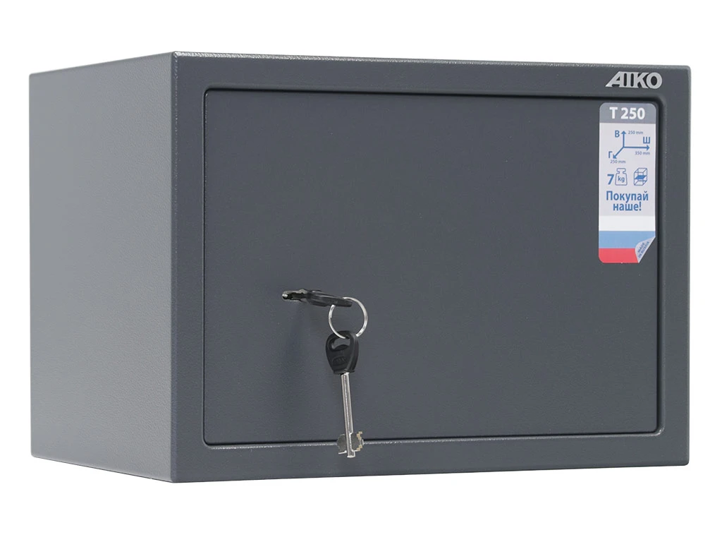 - — Офисный сейф Aiko T-250 KL имеет сертификат соответствия стандартам ГОСТ на начальную устойчивость ко взлому и соответствует требованиям МВД РФ к хранению огнестрельного оружия.