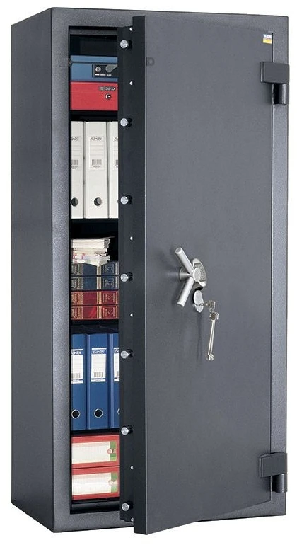 - Дверь и стены сейфа снабжены многослойной запатентованной защитой типа «сэндвич» с введением композиционных материалов.